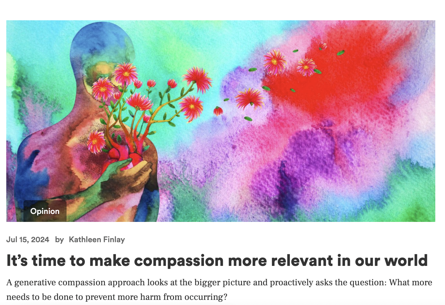 Many policy and legislative changes have resulted from our advocacy work, including 988, the new national mental health crisis and suicide prevention lifeline, which Generative/Compassion’s founder Kathleen Finlay introduced to Canada in a tireless campaign launched in 2019. Kathleen’s advocacy work has also produced public policy firsts in combating sexual misconduct, reinstating basic income benefits to low income seniors, requiring disclosure of statistics regarding sexual misconduct complaints at the federal level and banning non-disclosure agreements in cases of sexual harassment.